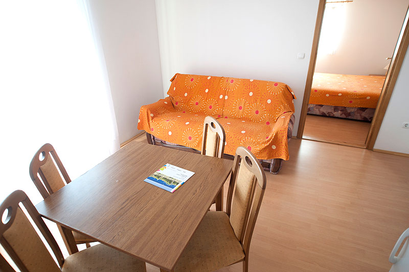 dnevni boravak i kuhinja su jedna prostorija, kauč za spavanje za 2 osobe,
